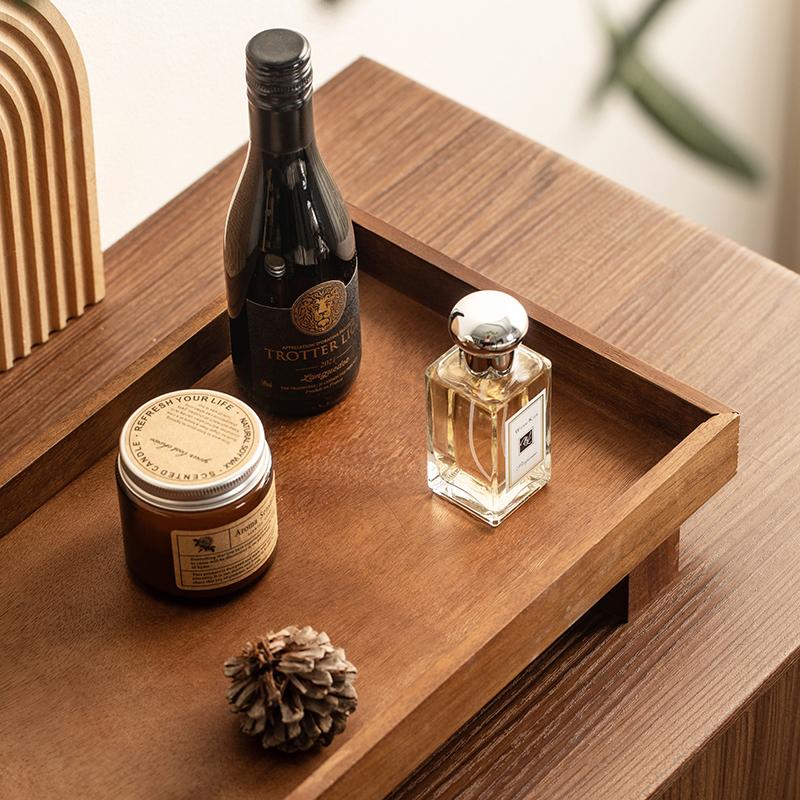 The tray features a natural wood grain, adding a touch of elegance to your home vanity, hotel countertops, or travel toiletries organization.