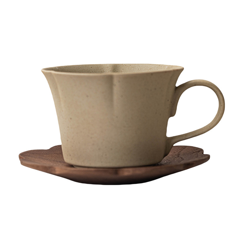 The Base: Solid walnut-tone wood saucer, carved to match the cup's flower shape.Capacity: 200ml (Approx.) - Ideal for cappuccino or drip coffee.